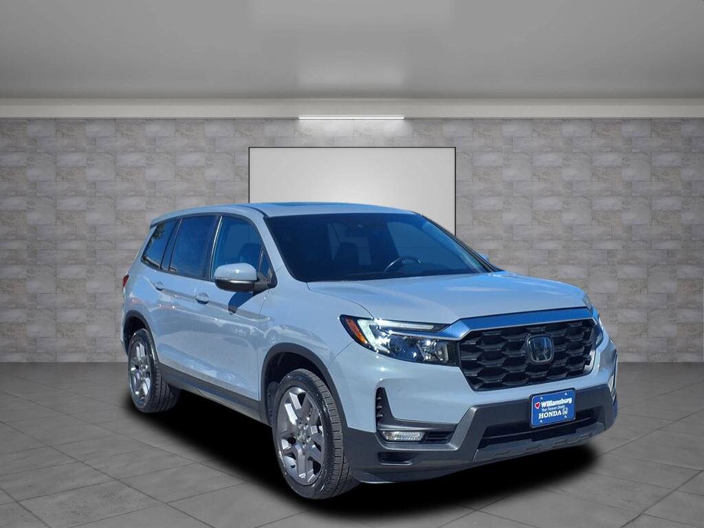 Williamsburg Auto Group is pleased to offer you this 2023 Honda Passport EX-L.This EX-L Passport is equipped with HondaTrue Certified Certified, 4-Wheel Disc Brakes, 4.334 Axle Ratio, 7 Speakers, A/V remote: CabinControl, ABS brakes, Air Conditioning, Alloy wheels, AM/FM radio: SiriusXM, Apple CarPlay/Android Auto, Auto High-beam Headlights, Auto-dimming Rear-View mirror, Automatic temperature control, Blind Spot Information (BSI) System warning, Brake assist, Bumpers: body-color, Delay-off headlights, Driver door bin, Driver vanity mirror, Driver's Seat Mounted Armrest, Dual front impact airbags, Dual front side impact airbags, Electronic Stability Control, Emergency communication system: HondaLink Assist, Exterior Parking Camera Rear, Four wheel independent suspension, Front anti-roll bar, Front Bucket Seats, Front Center Armrest, Front dual zone A/C, Front reading lights, Fully automatic headlights, Garage door transmitter: HomeLink, Heated door mirrors, Heated Front Bucket Seats, Heated front seats, Illuminated entry, Lane departure: Lane Keeping Assist System (LKAS) active, Leather-Trimmed Seats, Low tire pressure warning, Occupant sensing airbag, Outside temperature display, Overhead airbag, Overhead console, Panic alarm, Passenger door bin, Passenger seat mounted armrest, Passenger vanity mirror, Power door mirrors, Power driver seat, Power Liftgate, Power moonroof, Power passenger seat, Power steering, Power windows, Radio data system, Radio: 215-Watt Audio System w/7 Speakers, Rear air conditioning, Rear anti-roll bar, Rear reading lights, Rear seat center armrest, Rear window defroster, Rear window wiper, Remote keyless entry, Security system, Speed control, Speed-sensing steering, Split folding rear seat, Spoiler, Steering wheel mounted audio controls, Tachometer, Telescoping steering wheel, Tilt steering wheel, Traction control, Trip computer, Turn signal indicator mirrors, Variably intermittent wipers, and Wheels: 20" Pewter Gray Alloy.