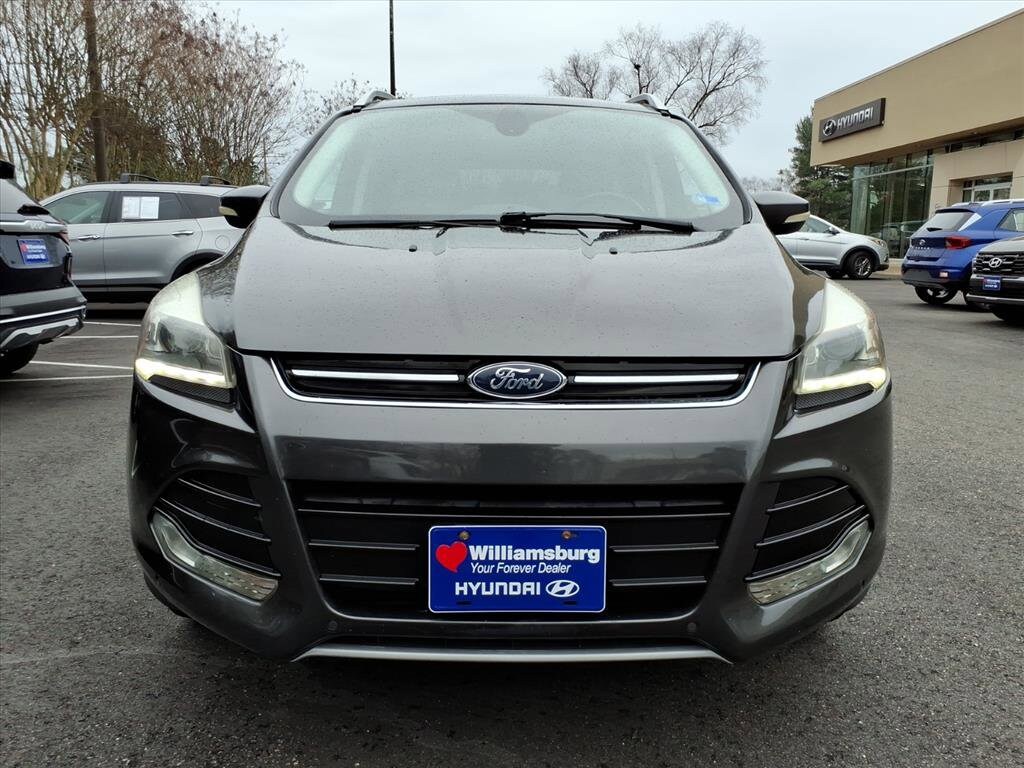 Williamsburg Auto Group is pleased to offer you this 2015 Ford Escape Titanium.This Titanium Escape is equipped with Equipment Group 301A, Titanium Technology Package (Active Park Assist, Bi-Xenon High-Intensity Discharge Headlamps, BLIS w/Cross Traffic Alert, and Rain-Sensing Wipers), 10 Speakers, 3.21 Axle Ratio, 4-Wheel Disc Brakes, ABS brakes, Air Conditioning, Alloy wheels, AM/FM radio: SiriusXM, Auto-dimming Rear-View mirror, Automatic temperature control, Brake assist, Bumpers: body-color, CD player, Compass, Delay-off headlights, Driver door bin, Driver vanity mirror, Dual front impact airbags, Dual front side impact airbags, Electronic Stability Control, Exterior Parking Camera Rear, Four wheel independent suspension, Front anti-roll bar, Front Bucket Seats, Front Center Armrest, Front dual zone A/C, Front fog lights, Front reading lights, Fully automatic headlights, Garage door transmitter, Heated door mirrors, Heated front seats, Heated Leather-Trimmed Buckets w/60/40 Rear Seat, Illuminated entry, Knee airbag, Leather Shift Knob, Low tire pressure warning, Memory seat, Navigation System, Occupant sensing airbag, Outside temperature display, Overhead airbag, Overhead console, Panic alarm, Passenger door bin, Passenger vanity mirror, Power door mirrors, Power driver seat, Power Liftgate, Power passenger seat, Power steering, Power windows, Radio data system, Radio: AM/FM Single CD/MP3, Rear anti-roll bar, Rear Parking Sensors, Rear reading lights, Rear seat center armrest, Rear window defroster, Rear window wiper, Remote keyless entry, Roof rack: rails only, Security system, Speed control, Speed-sensing steering, Split folding rear seat, Steering wheel mounted audio controls, SYNC w/MyFord Touch & SYNC Services, Tachometer, Telescoping steering wheel, Tilt steering wheel, Traction control, Trip computer, Turn signal indicator mirrors, Variably intermittent wipers, and Wheels: 18" Sparkle Nickel Painted Aluminum.