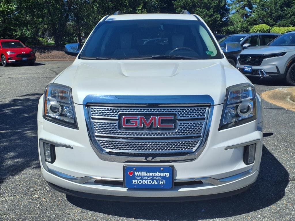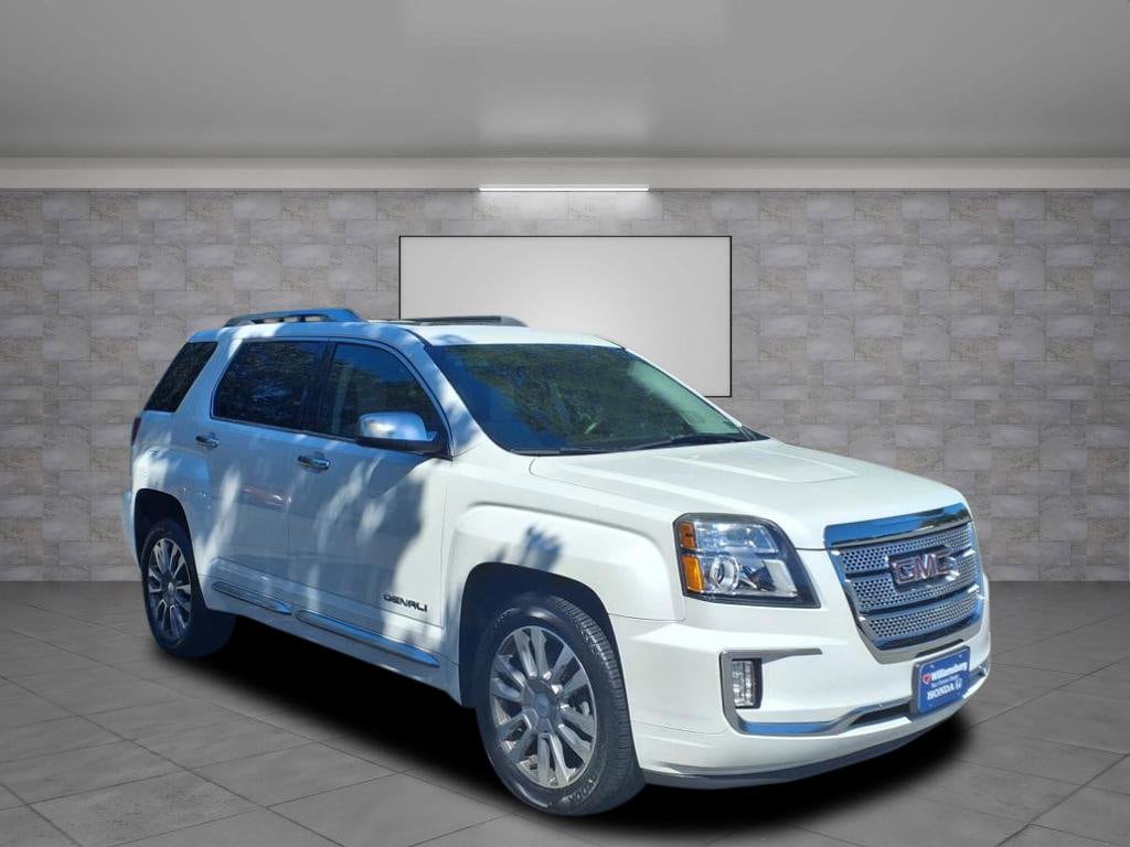 Williamsburg Auto Group is pleased to offer you this 2016 GMC Terrain Denali.This Denali Terrain is equipped with Driver Alert Package I (Rear Cross-Traffic Alert, Rear Park Assist, and Side Blind Zone Alert), Driver Alert Package II (Forward Collision Alert & Lane Departure Warning), Preferred Equipment Group 5SA (4-Spoke Leather-Wrapped w/Wood Steering Wheel, 8-Way Power Passenger Seat Adjuster, Heated Driver & Front Passenger Seats, Illuminated Front Sill Plates, Intellilink w/Bluetooth, Power Programmable Rear Liftgate, Remote Vehicle Start, Satin Chrome Door Handles, Satin Chrome Heated Power-Adjustable Mirrors, Satin Chrome Luggage Rails, Satin Chrome Surround Grille, Single-Zone Automatic Climate Control, and Universal Home Remote), Trailering Equipment Package (LPO) (Class II 1-1/4 Receiver Hitch), 155 Amp Alternator, 2.77 Axle Ratio, 3.23 Axle Ratio, 4-Wheel Disc Brakes, 8 Speakers, 8-Way Power Driver Seat Adjuster, ABS brakes, Air Conditioning, Alloy wheels, AM/FM radio: SiriusXM, Auto-dimming Rear-View mirror, Automatic temperature control, Brake assist, Bumpers: body-color, Cargo Area Close-Out Panel (LPO), Compass, Delay-off headlights, Driver door bin, Driver vanity mirror, Dual Exhaust w/Premium Tips, Dual front impact airbags, Dual front side impact airbags, E10 Fuel Capable, Electronic Stability Control, Emergency communication system, Exterior Parking Camera Rear, Four wheel independent suspension, Front anti-roll bar, Front Bucket Seats, Front Center Armrest, Front License Plate Bracket, Front reading lights, Fully automatic headlights, Garage door transmitter, Heated door mirrors, Heated front seats, Illuminated entry, Leather steering wheel, Low tire pressure warning, Memory seat, Occupant sensing airbag, Outside temperature display, Overhead airbag, Panic alarm, Passenger door bin, Passenger vanity mirror, Perforated Leather-Appointed Seat Trim, Pioneer Premium 8-Speaker System, Power door mirrors, Power driver seat, Power Liftgate, Power passenger seat, Power steering, Power Tilt-Sliding Sunroof w/Express Open, Power windows, Radio data system, Radio: Color Touch AM/FM Stereo, Radio: Color Touch AM/FM Stereo w/Navigation, Rear anti-roll bar, Rear Parking Sensors, Rear seat center armrest, Rear window defroster, Rear window wiper, Remote keyless entry, Roof rack: rails only, Security system, SiriusXM Satellite Radio, Speed control, Speed-sensing steering, Split folding rear seat, Spoiler, Steering wheel mounted audio controls, Tachometer, Telescoping steering wheel, Tilt steering wheel, Traction control, Trip computer, Variably intermittent wipers, Wheels: 18" x 7" Denali-Specific (4), and Wheels: 19" x 7" Denali-Specific (4)