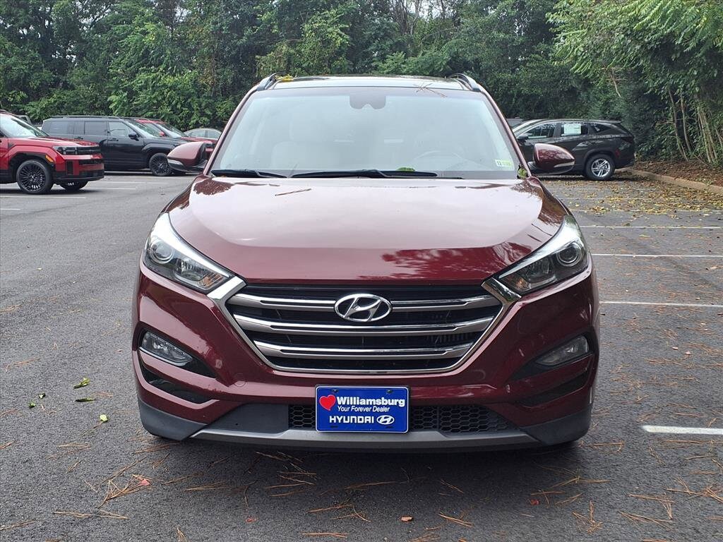 Williamsburg Auto Group is pleased to offer you this 2016 Hyundai Tucson Limited.This Limited Tucson is equipped with Limited Ultimate Package 03 (4.2-Inch Color LCD Electroluminescent Cluster, Automatic Emergency Braking (AEB), Front & Rear LED Maplights, Heated Rear Seats, High-Intensity Discharge Headlights, Lane Departure Warning System, Panoramic Sunroof, Rear Parking Sensors, and Ventilated Front Bucket Seats), Option Group 03, 3.579 Axle Ratio, 4-Wheel Disc Brakes, 8 Speakers, ABS brakes, Air Conditioning, Alloy wheels, AM/FM radio: SiriusXM, Anti-whiplash front head restraints, Auto-dimming Rear-View mirror, Automatic temperature control, Brake assist, Bumpers: body-color, Cargo Cover, Cargo Net, Carpeted Floor Mats, Compass, Delay-off headlights, Driver door bin, Driver vanity mirror, Dual front impact airbags, Dual front side impact airbags, Electronic Stability Control, Emergency communication system: Blue Link, Exterior Parking Camera Rear, First Aid Kit, Four wheel independent suspension, Front anti-roll bar, Front Bucket Seats, Front Center Armrest, Front dual zone A/C, Front fog lights, Front reading lights, Fully automatic headlights, Garage door transmitter: HomeLink, Heated door mirrors, Heated Front Bucket Seats w/Power Driver, Heated front seats, Illuminated entry, Leather Seat Trim, Leather Shift Knob, Low tire pressure warning, Mudguards, Occupant sensing airbag, Outside temperature display, Overhead airbag, Overhead console, Panic alarm, Passenger door bin, Passenger vanity mirror, Power door mirrors, Power driver seat, Power Liftgate, Power passenger seat, Power steering, Power windows, Radio: Autonet AM/FM/HD Radio/MP3 Audio System, Rear anti-roll bar, Rear Cargo Tray, Rear seat center armrest, Rear window defroster, Rear window wiper, Remote keyless entry, Roof rack: rails only, Security system, Speed control, Speed-sensing steering, Split folding rear seat, Spoiler, Steering wheel mounted audio controls, Tachometer, Telescoping steering wheel, Tilt steering wheel, Traction control, Trip computer, Turn signal indicator mirrors, Variably intermittent wipers, and Wheels: 19 x 7.5J Alloys.