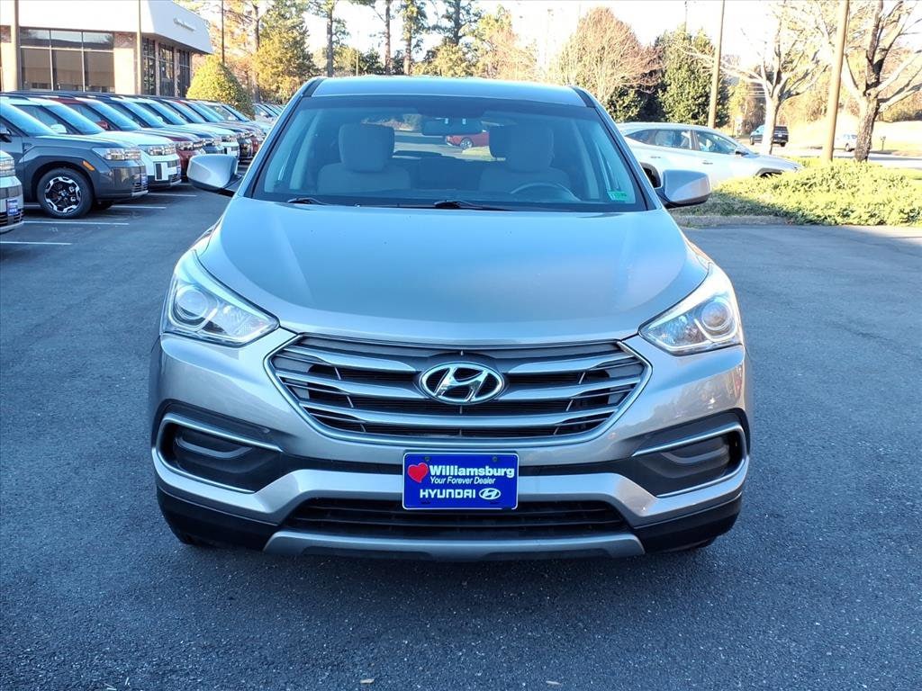 Williamsburg Auto Group is pleased to offer you this 2018 Hyundai Santa Fe Sport 2.4 Base.This 2.4 Base Santa Fe Sport is equipped with Option Group 01, 17" x 7" Alloy Wheels, 4-Wheel Disc Brakes, 6 Speakers, ABS brakes, Air Conditioning, Alloy wheels, AM/FM radio, AM/FM/CD/MP3 Audio System, Axle Ratio 3.51, Brake assist, Bumpers: body-color, CD player, Delay-off headlights, Driver door bin, Driver vanity mirror, Dual front impact airbags, Dual front side impact airbags, Electronic Stability Control, Exterior Parking Camera Rear, Four wheel independent suspension, Front anti-roll bar, Front Bucket Seats, Front Center Armrest, Front reading lights, Fully automatic headlights, Illuminated entry, Knee airbag, Low tire pressure warning, Multi-Adjustable Bucket Seats, Occupant sensing airbag, Outside temperature display, Overhead airbag, Overhead console, Panic alarm, Passenger door bin, Passenger vanity mirror, Power door mirrors, Power steering, Power windows, Rear anti-roll bar, Rear seat center armrest, Rear window defroster, Rear window wiper, Remote keyless entry, Security system, Speed control, Speed-sensing steering, Split folding rear seat, Spoiler, Stain-Resistant Cloth Seating Surfaces, Steering wheel mounted audio controls, Tachometer, Telescoping steering wheel, Tilt steering wheel, Traction control, Trip computer, and Variably intermittent wipers.