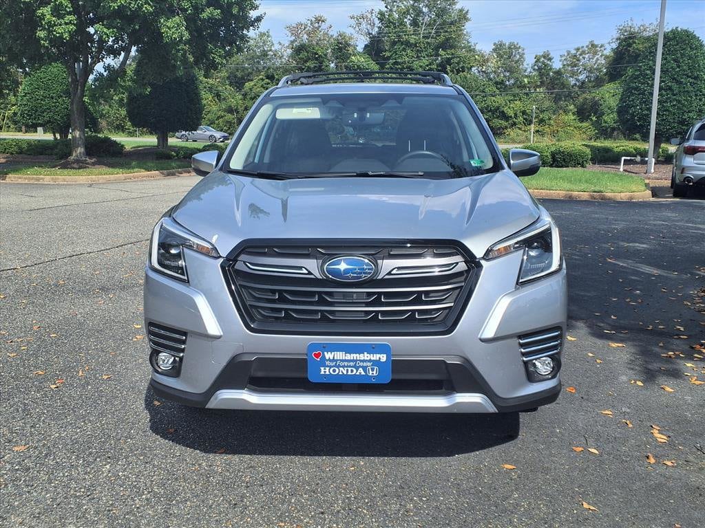 Williamsburg Auto Group is pleased to offer you this 2023 Subaru Forester Touring.This Touring Forester is equipped with Standard Model, 3.70 Axle Ratio, 4-Wheel Disc Brakes, 9 Speakers, ABS brakes, Air Conditioning, Alloy wheels, AM/FM radio: SiriusXM, Anti-whiplash front head restraints, Auto High-beam Headlights, Auto-Dimming Exterior Mirror w/Approach Light, Auto-Dimming Mirror w/Compass & HomeLink, Automatic temperature control, Brake assist, Bumpers: body-color, Cargo Net, CD player, Crossbar Set - Aero, Driver door bin, Driver vanity mirror, Dual front impact airbags, Dual front side impact airbags, Electronic Stability Control, Emergency communication system: STARLINK Safety and Security (Subscription Required), Exterior Parking Camera Rear, Four wheel independent suspension, Front anti-roll bar, Front Bucket Seats, Front Center Armrest, Front dual zone A/C, Front fog lights, Front reading lights, Fully automatic headlights, harman/kardon 9-Speaker Audio System, harman/kardon® Speakers, Heated door mirrors, Heated Front Bucket Seats, Heated front seats, Heated rear seats, Heated steering wheel, HVAC memory, Illuminated entry, Knee airbag, Leather Shift Knob, Low tire pressure warning, Memory seat, Navigation System, Occupant sensing airbag, Outside temperature display, Overhead airbag, Overhead console, Panic alarm, Passenger door bin, Passenger vanity mirror, Perforated Leather-Trimmed Upholstery, Power door mirrors, Power driver seat, Power Liftgate, Power moonroof: Panoramic, Power passenger seat, Power steering, Power windows, Premium audio system: harman/kardon, Radio data system, Radio: Subaru Starlink 8.0" Multimedia Nav System, Rear anti-roll bar, Rear Bumper Cover, Rear seat center armrest, Rear Seatback Protector, Rear window defroster, Rear window wiper, Remote keyless entry, Roof rack: rails only, Security system, Speed control, Speed-sensing steering, Splash Guards, Split folding rear seat, Spoiler, STARLINK/Apple CarPlay/Android Auto, Steering wheel mounted audio controls, Tachometer, Telescoping steering wheel, Tilt steering wheel, Traction control, Trip computer, Turn signal indicator mirrors, Variably intermittent wipers, and Wheels: 18" x 7.0 J Dark Gray Machine Finish Alloy.
